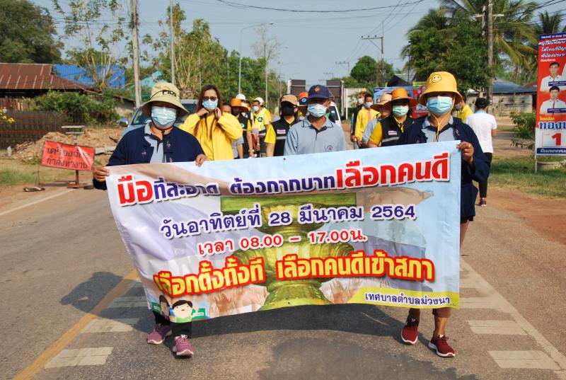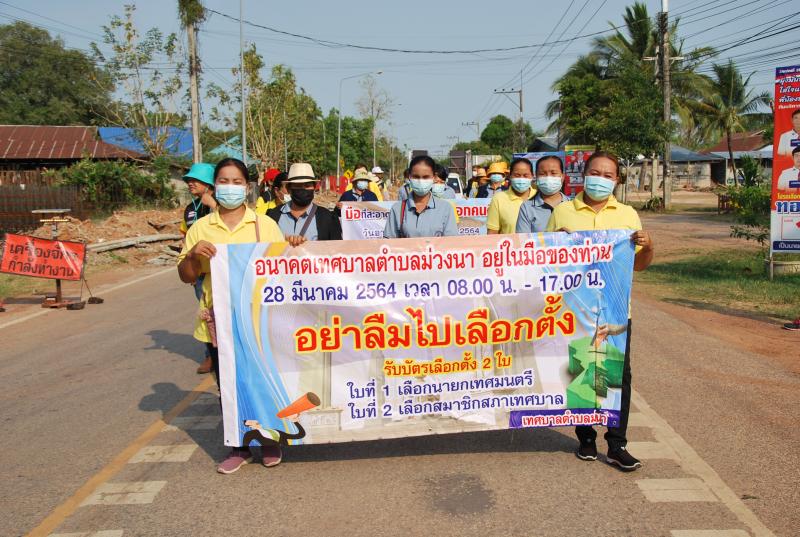 นำโดย นายปรเมศวร์ อิ่มแมน ปลัดเทศบาลตำบลม่วงนา ปฏิบัติหน้าที่นายกเทศมนตรีตำบลม่วงนาได้จัดกิจกรรมเดินรณรงค์ประชาสัมพันธ์การเลือกตั้ง เพื่อสร้างความรู้ความเข้าใจเกี่ยวกับการเลือกตั้งสมาชิกสภาเทศบาลและนายกเทศมนตรี