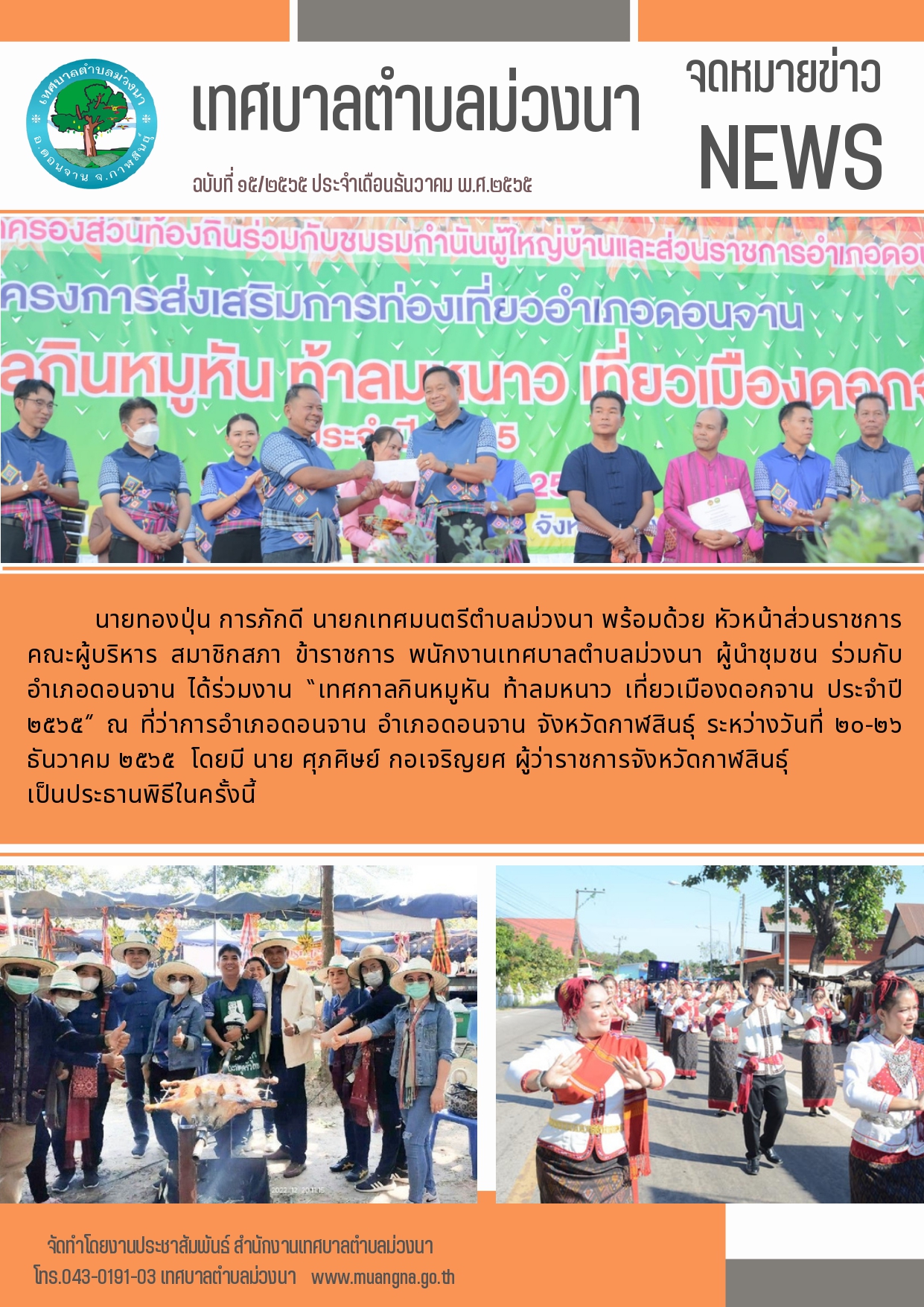 รายละเอียด : นายทองปุ่น การภักดี นายกเทศมนตรีตำบลม่วงนา พร้อมด้วย หัวหน้าส่วนราชการ คณะผู้บริหาร สมาชิกสภา ข้าราชการ พนักงานเทศบาลตำบลม่วงนา ผู้นำชุมชน ร่วมกับอำเภอดอนจาน ได้ร่วมงาน “เทศกาลกินหมูหัน ท้าลมหนาว เที่ยวเมืองดอกจาน ประจำปี ๒๕๖๕” ณ ที่ว่าการอำเภอดอนจาน อำเภอดอนจาน จังหวัดกาฬสินธุ์ ระหว่างวันที่ ๒๐-๒๖ ธันวาคม ๒๕๖๕ โดยมี นาย ศุภศิษย์ กอเจริญยศ ผู้ว่าราชการจังหวัดกาฬสินธุ์ เป็นประธานพิธีในครั้งนี้