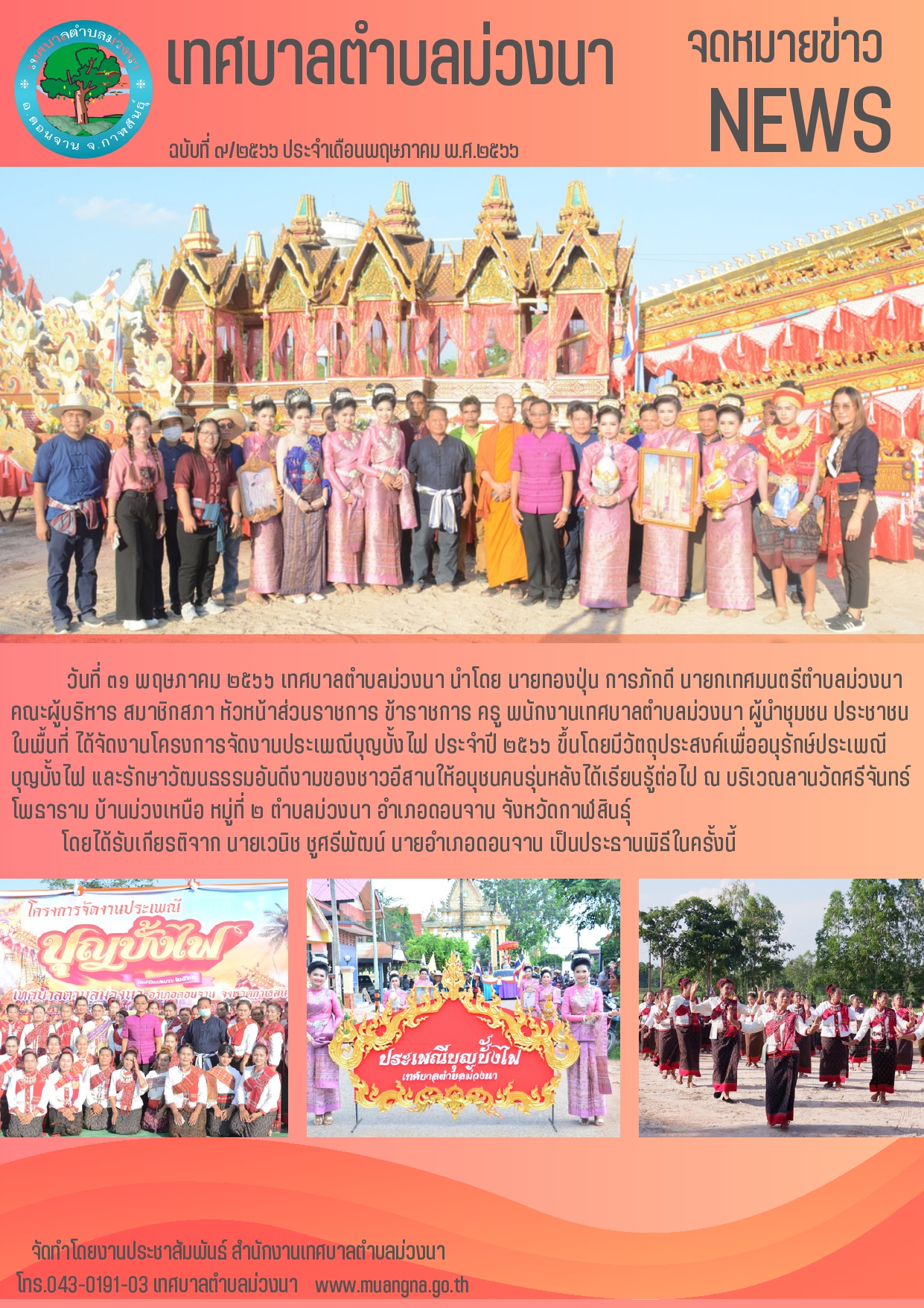 รายละเอียด : วันที่ ๓๑ พฤษภาคม ๒๕๖๖ เทศบาลตำบลม่วงนา นำโดย นายทองปุ่น การภักดี นายกเทศมนตรีตำบลม่วงนา คณะผู้บริหาร สมาชิกสภา หัวหน้าส่วนราชการ ข้าราชการ ครู พนักงานเทศบาลตำบลม่วงนา ผู้นำชุมชน ประชาชนในพื้นที่ ได้จัดงานโครงการจัดงานประเพณีบุญบั้งไฟ ประจำปี ๒๕๖๖ ขึ้นโดยมีวัตถุประสงค์เพื่ออนุรักษ์ประเพณีบุญบั้งไฟ และรักษาวัฒนธรรมอันดีงามของชาวอีสานให้อนุชนคนรุ่นหลังได้เรียนรู้ต่อไป ณ บริเวณลานวัดศรีจันทร์โพธาราม บ้านม่วงเหนือ หมู่ที่ ๒ ตำบลม่วงนา อำเภอดอนจาน จังหวัดกาฬสินธุ์