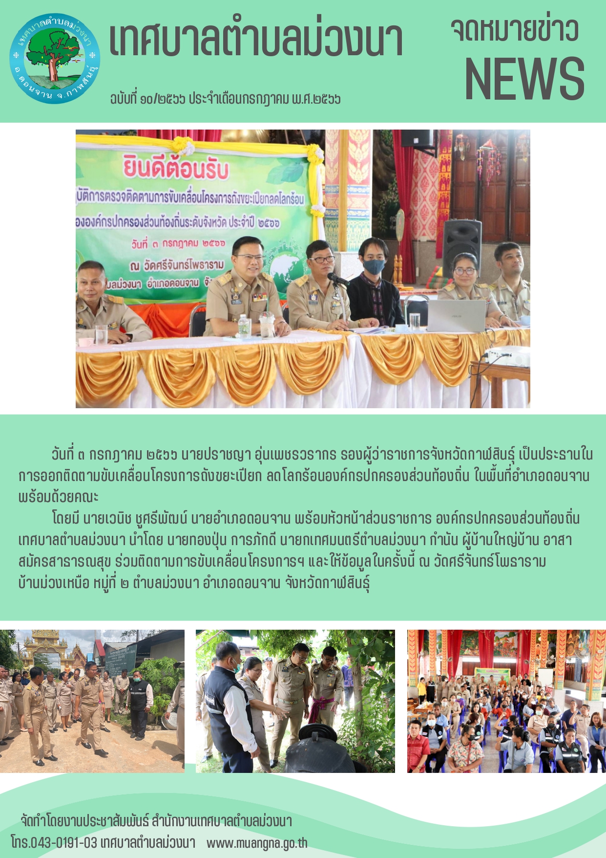 รายละเอียด : วันที่ ๓ กรกฎาคม ๒๕๖๖ นายปราชญา อุ่นเพชรวรากร รองผู้ว่าราชการจังหวัดกาฬสินธุ์ เป็นประธานในการออกติดตามขับเคลื่อนโครงการถังขยะเปียก ลดโลกร้อนองค์กรปกครองส่วนท้องถิ่น ในพื้นที่อำเภอดอนจาน พร้อมด้วยคณะ​ โดยมี นายเวนิช ชูศรีพัฒน์ นายอำเภอดอนจาน พร้อมหัวหน้าส่วนราชการ องค์กรปกครองส่วนท้องถิ่น เทศบาลตำบลม่วงนา นำโดย นายทองปุ่น การภักดี นายกเทศมนตรีตำบลม่วงนา กำนัน ผู้บ้านใหญ่บ้าน อาสาสมัครสาธารณสุข ร่วมติดตามการขับเคลื่อนโครงการฯ และให้ข้อมูลในครั้งนี้ ณ วัดศรีจันทร์โพธาราม บ้านม่วงเหนือ หมู่ที่ ๒ ตำบลม่วงนา อำเภอดอนจาน จังหวัดกาฬสินธุ์
